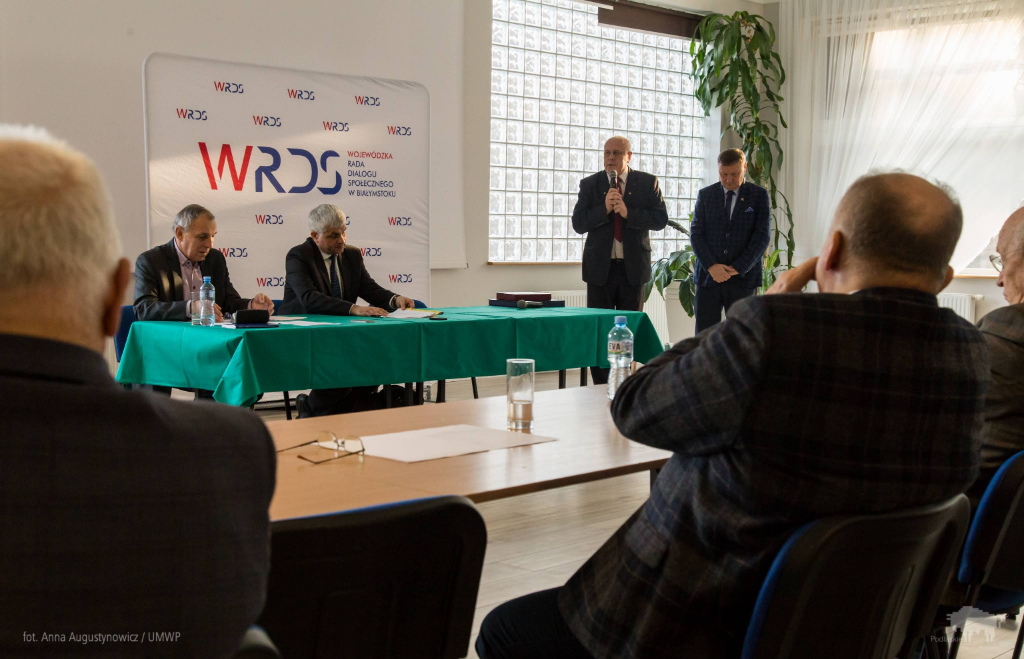 13 stycznia 2020r. odbyło się pierwsze tegoroczne posiedzenie Prezydium Wojewódzkiej Rady Dialogu Społecznego. W obradach wziął udział Artur Kosicki, Marszałek Województwa Podlaskiego. Głównymi tematami posiedzenia były plany pracy WRDS na rok 2020 oraz dyskusja nad planem działań na rzecz zatrudnienia w regionie. Plan pracy WRDS na bieżący rok zakłada dyskusje nad tematami takimi jak: strategia regionalna, sytuacja kadrowa i finansowa w podlaskiej służbie zdrowia, perspektywy rozwoju systemu kształcenia ustawicznego, sytuacji finansowej podlaskich samorządów. Podczas omawiania Regionalnego Planu Działań na Rzecz Zatrudnienia na rok 2020 w województwie podlaskim dyskutowano nad wyzwaniami demograficznymi w kontekście aktywizacji zawodowej seniorów i osób zbliżających się do wieku emerytalnego, mówiono o polityce samozatrudnienia, zaangażowania cudzoziemców na podlaskim rynku pracy oraz tworzenia większej ilości miejsc pracy wysokiej jakości.