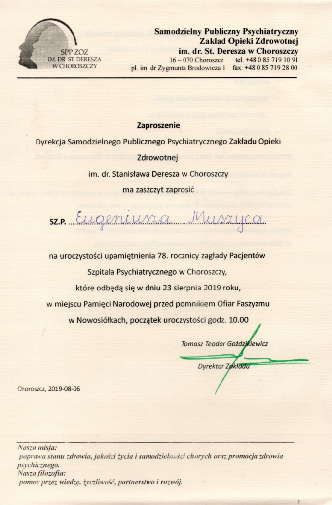 78. rocznica zagłady pacjentów szpitala w Choroszczy