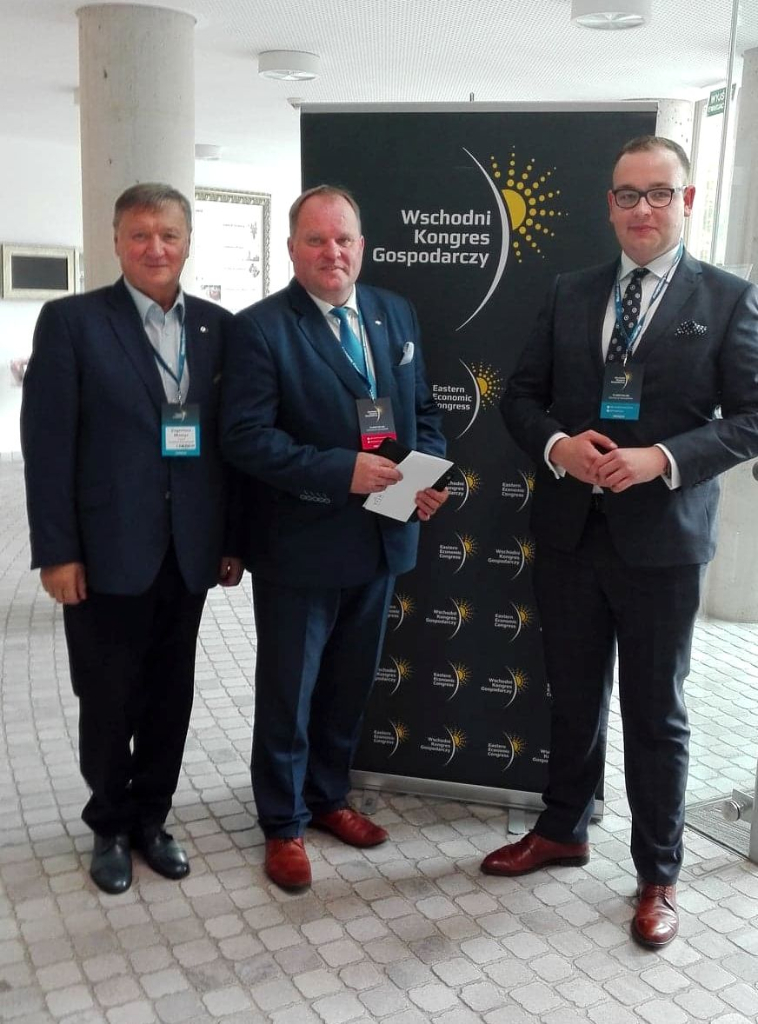 W dniach 25-25 września 2019r. w Operze i Filharmonii Podlaskiej odbył się VI Wschodni Kongres Gospodarczy. Tegorocznemu kongresowi towarzyszyło hasło: „Tu spotyka się Zachód ze Wschodem”, co podkreśla intencje przyświecające organizatorowi i partnerom Kongresu – chęć tworzenia otwartej przestrzeni do dyskusji, do konfrontowania i zbliżania stanowisk, poszukiwania tego, co wspólne i co służy rozwojowi. Kongres, to ogromne przedsięwzięcie, którego głównym celem jest dyskusja o przyszłości Polski Wschodniej w kontekście geopolitycznej, gospodarczej i społecznej specyfiki tego regionu. Agenda szóstej edycji kongresu obejmowała jak co roku przekrojowe i aktualne spektrum tematów – od relacji między Unią Europejską a wschodem Europy, poprzez zagadnienia współpracy międzynarodowej, wspólnych europejskich inwestycji, aż po przemiany związane z cyfryzacją. Przez dwa dni w debatach gospodarczych wzięło udział ponad tysiąc osób: przedstawicieli przedsiębiorców, samorządowców, organizacji gospodarczych, polityków, także gości z zagranicy, dyplomatów; w sumie ponad 1500 uczestników, 700 studentów, 200 prelegentów oraz 30 debat. Listy do uczestników kongresu wystosowali Prezydent RP Andrzej Duda i Premier RP Mateusz Morawiecki.