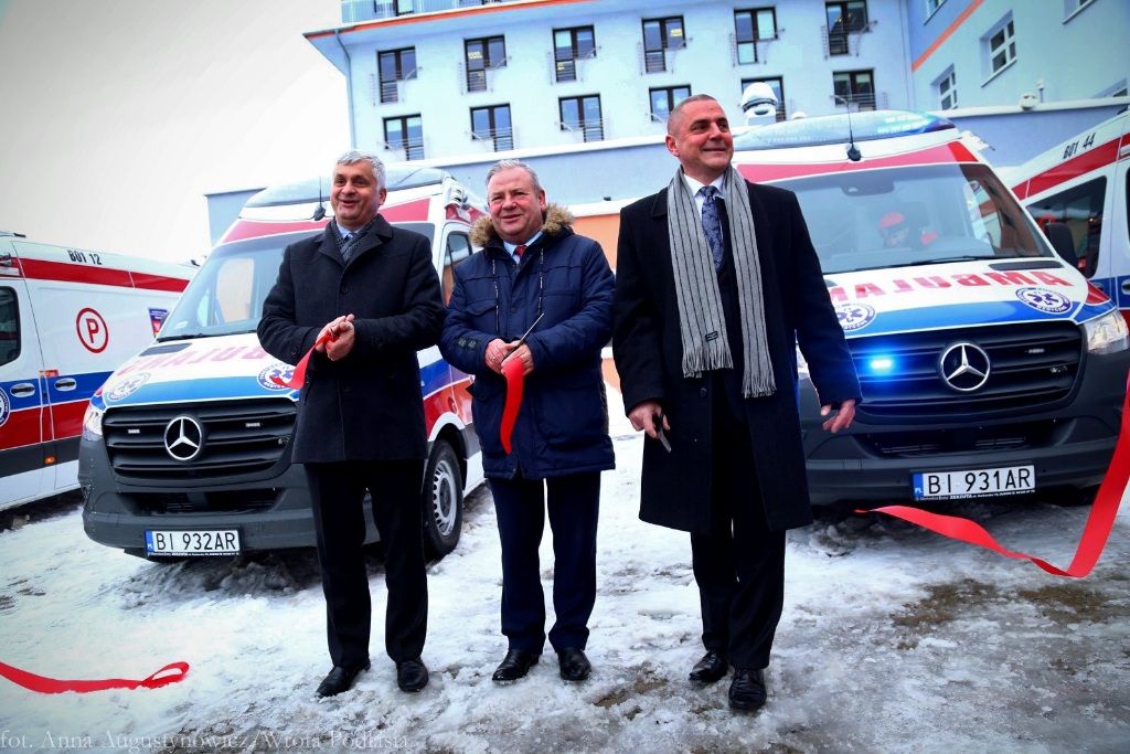 16 stycznia 2019r. przewodniczący Eugeniusz Muszyc miał zaszczyt uczestniczyć w uroczystości przekazania do użytku pięciu nowych karetek, które WSPR w Białymstoku zakupiła ze środków własnych. W uroczystości uczestniczył m.in. wojewoda podlaski Bohdan Paszkowski, wicemarszałek Marek Olbryś, dyrektor pogotowia Bogdan Kalicki, przedstawiciele duchowieństwa i służb mundurowych. Trzy z nowo zakupionych karetek będą służyły ratowaniu życia pacjentów w Białymstoku, jedna w Mońkach i jedna w Sokółce. Jest to kolejna inwestycja, zmierzająca do odnowienia taboru samochodowego WSPR, a zakupione, nowoczesne karetki zastąpią najbardziej wyeksploatowany sprzęt. Wojewódzka Stacja Pogotowia Ratunkowego w Białymstoku pełni zadania nie tylko w zakresie ratownictwa medycznego. Świadczy bowiem usługi nocnej i świątecznej opieki medycznej oraz transportów sanitarnych.