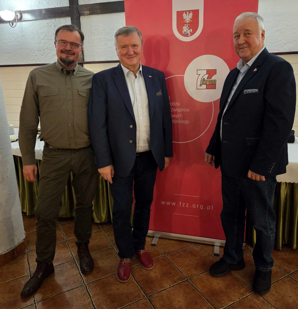 W dniu 21 listopada 2025 r. odbyło się posiedzenie Zarządu Forum Związków Zawodowych woj. podlaskiego prowadzone przez Eugeniusza Muszyca, przewodniczącego struktur wojewódzkich Forum. W posiedzeniu wzięli udział m.in. przewodniczący organizacji związkowych skupionych w FZZ. Poruszono wiele ważnych tematów dotyczących spraw bieżących. Oprócz tematyki bieżącej, omawiano rolę, znaczenie i zadania Rady Dialogu Społecznego (RDS) – głównej instytucji dialogu trójstronnego w Polsce. Celem RDS jest prowadzenie dialogu społecznego w celu zapewnienia rozwoju społeczno-gospodarczego, zwiększenia konkurencyjności polskiej gospodarki oraz poprawy jakości i realizacji polityk społeczno-gospodarczych. W jej skład wchodzą przedstawiciele strony pracowników, pracodawców oraz rządu. Omawiano również zagadnienia związane z bezpieczeństwem kraju i Unii Europejskiej.